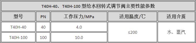 T40H型给水回转式调节阀主要性能参数
